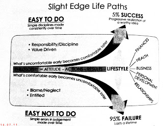At the very end you are given simple task of filling in your slight edge rituals that you will embedd into the following areas; Health, Business, Personal Development, Relationships and Finances.